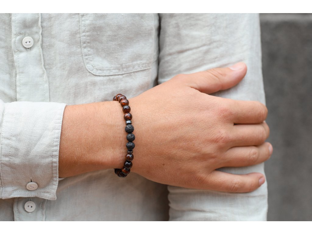 Díky pružné gumičce se náramek pohodlně nosí a přizpůsobí zápěstí. Tygří oko podporuje sebevědomí a odvahu, lávový kámen přináší stabilitu a klid, a hematit dodává vnitřní sílu a ochranu. Náramek je vyroben ručně v České republice, vhodný pro ženy i muže, a hodí se zejména pro znamení Lev, Štír a Kozoroh. Ideální jako dárek, pro každodenní nošení, nebo pro chvíle, kdy chcete dodat svému vzhledu eleganci a pozitivní energii.