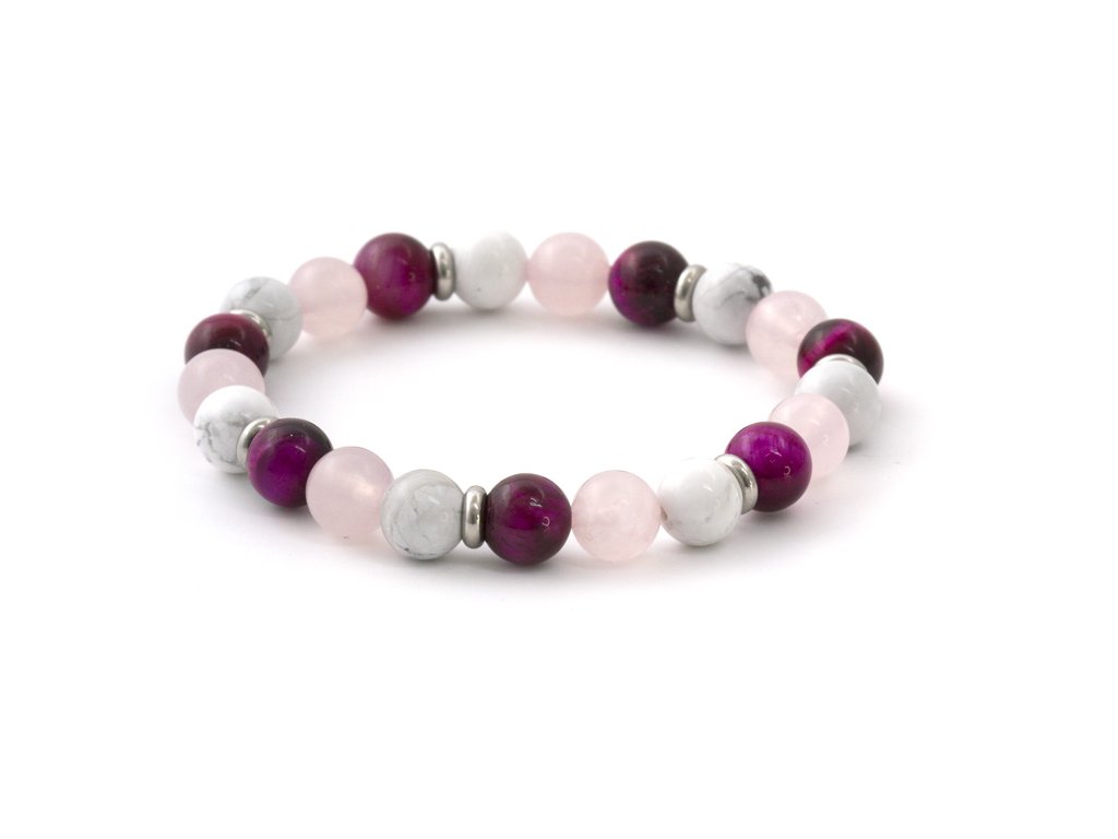 Tento náramek je ručně vyráběný v České republice, což zaručuje jeho vysokou kvalitu a precizní zpracování. Tygří oko přináší vnitřní sílu a ochranu, růženín podporuje lásku a jemnost, zatímco howlitu dodává klid a rovnováhu. Náramek je vhodný pro znamení Váhy, Raka a Býka, ale potěší každého, kdo hledá harmonii a pozitivní energii. Skvělý tip na dárek i osobní doplněk.
