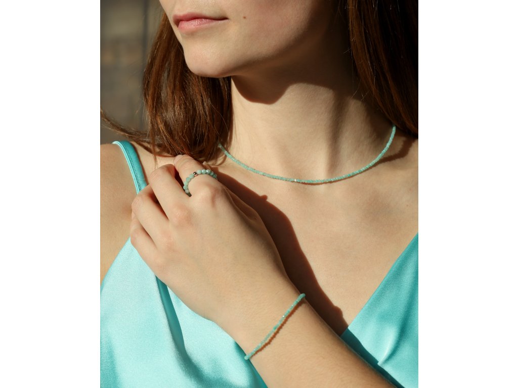 Amazonit je kámen harmonie a odvahy, který pomáhá uvolnit napětí, uklidňuje mysl a podporuje vnitřní rovnováhu. Náhrdelník je tvořen přírodními amazonity a doplněn o komponenty ze stříbra. Díky bezpečnostnímu zapínání na karabinku a možnosti prodloužení z 42 cm až o 5 cm se pohodlně přizpůsobí každému. Hodí se zejména pro znamení Vodnáře, Ryb a Panny. Ideální pro každodenní nošení nebo jako dárek, který vnese do života klid a jemnou energii.