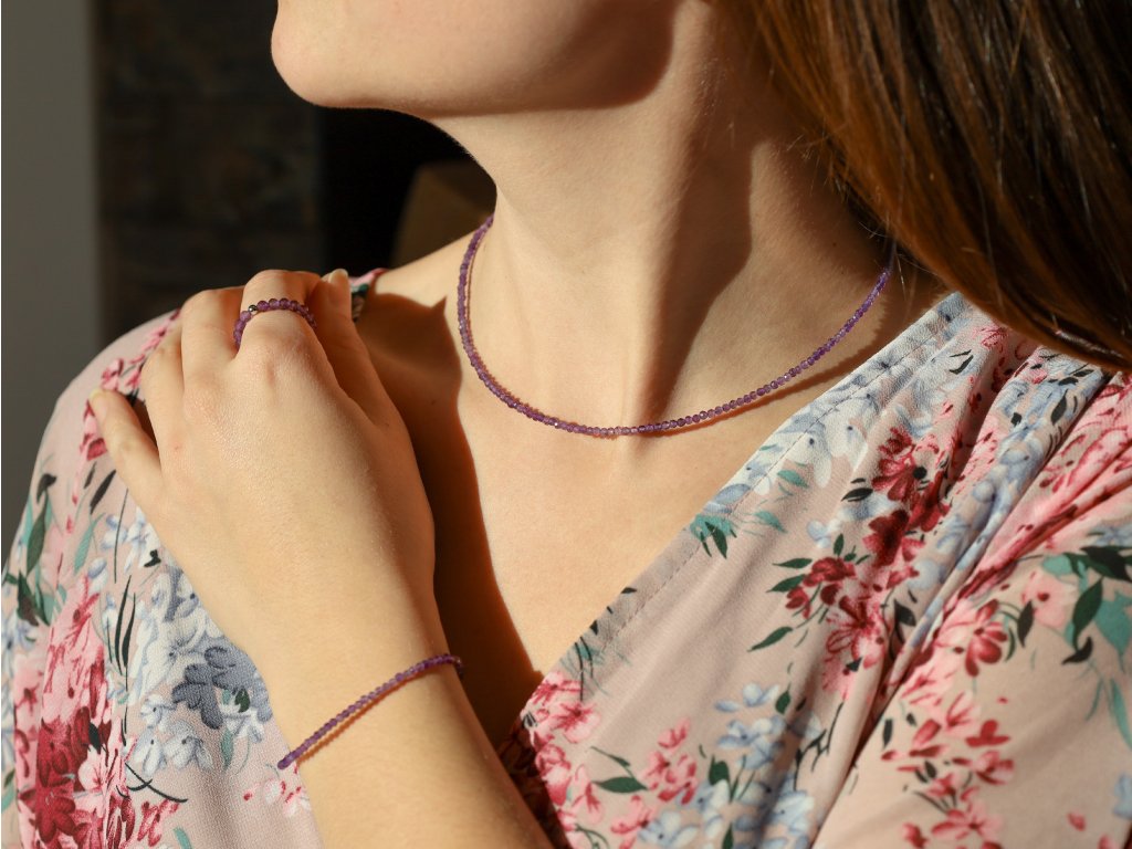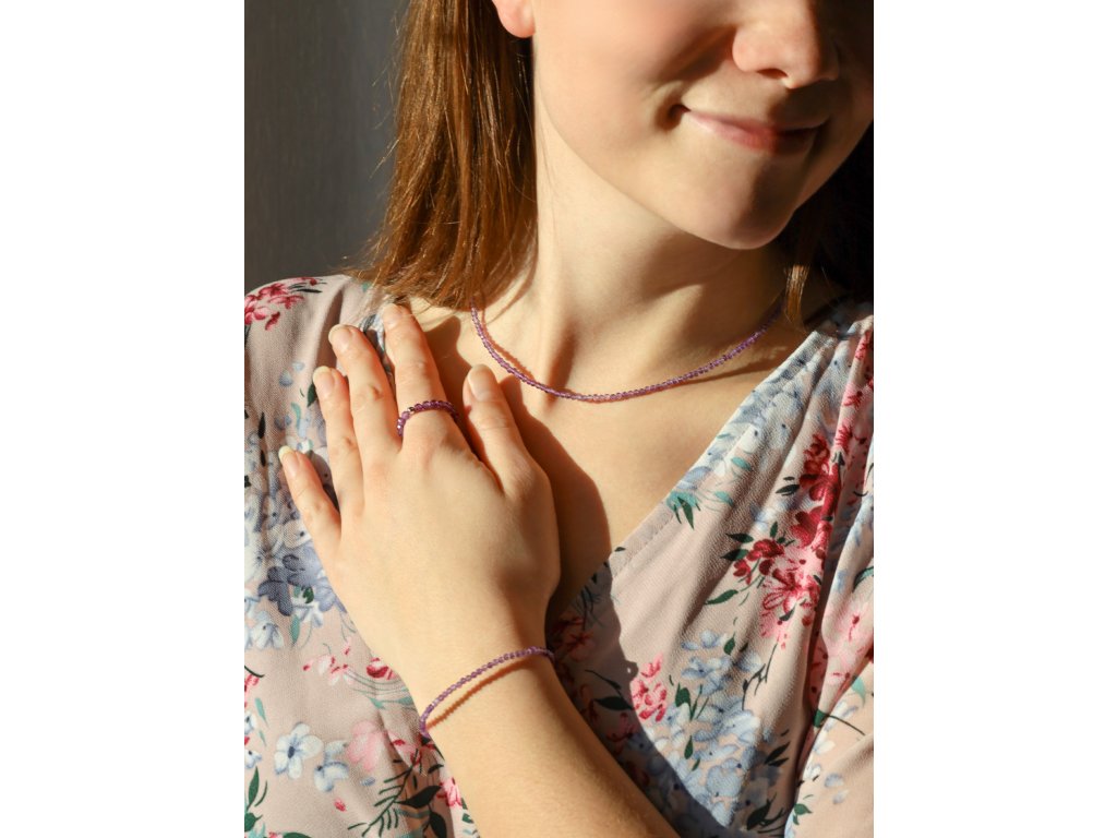 Ametyst je kámen duchovní rovnováhy a intuice, který pomáhá zklidnit mysl a posiluje vnitřní sílu. Náhrdelník je tvořen přírodními ametysty a doplněn o komponenty ze stříbra. Díky praktickému zapínání na karabinku a možnosti prodloužení z 42 cm až o 5 cm se příjemně nosí a snadno přizpůsobí. Hodí se zejména pro znamení Ryb, Panny a Střelce.