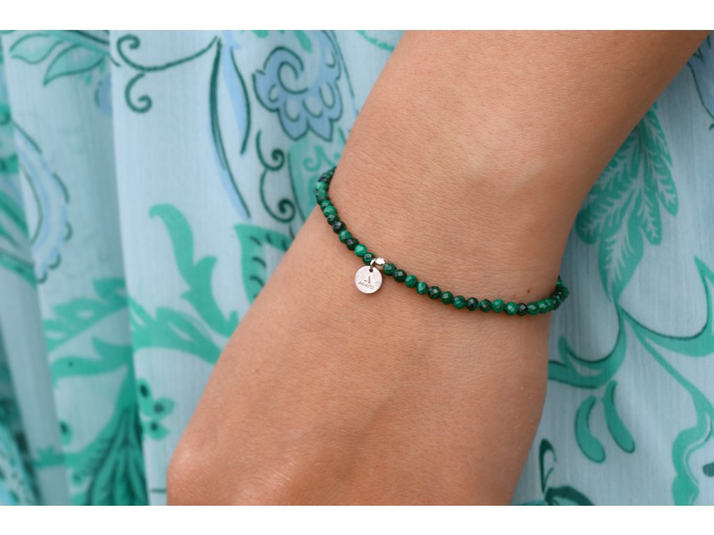 Malachit je kámen transformace a ochrany, který podporuje vnitřní rovnováhu a pozitivní energii. Náramek je navlečen na pružné gumičce a doplněn o drobné logo značky. Díky délce 17 cm se pohodlně nosí a snadno přizpůsobí zápěstí. Hodí se zejména pro znamení Býka, Raka a Štíra. Skvělý pro každodenní nošení nebo jako dárek, který vnese do života vitalitu a harmonii.
