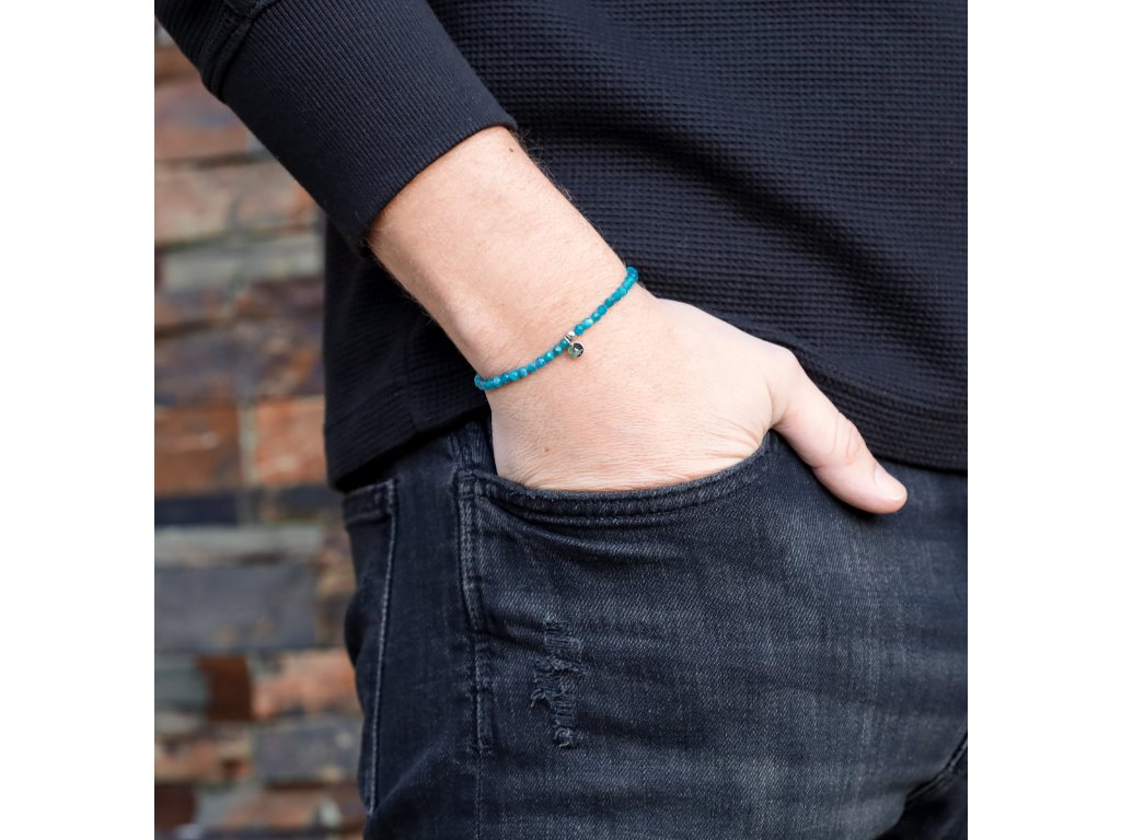 Apatit je kámen soustředění a vnitřní harmonie, který podporuje jasné myšlení, klid a rovnováhu emocí. Náramek je navlečen na pružné gumičce a doplněn o stříbrné detaily s logem značky, díky čemuž se pohodlně nosí a perfektně padne na zápěstí. Díky délce 19,5–20 cm je vhodný pro muže všech typů postavy, zejména pro znamení Střelce, Vodnáře a Blíženců. Skvělý pro každodenní nošení nebo jako dárek, který vnese do života styl, klid a harmonii.