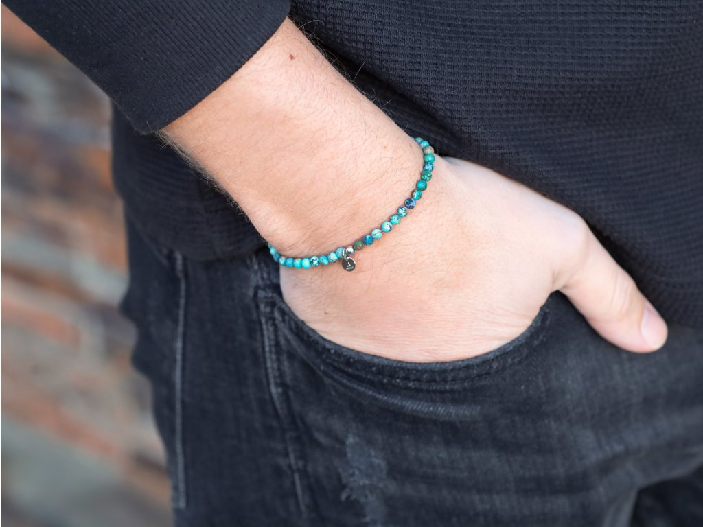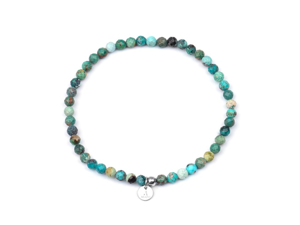 Tyrkys Hubei je kámen ochrany a vnitřní rovnováhy, který podporuje uklidnění mysli, harmonii emocí a sebevědomí. Náramek je navlečen na pružné gumičce a doplněn o stříbrný korálek a přívěsek s logem značky, což zajišťuje pohodlné nošení a perfektní padnutí na zápěstí. Díky délce 19,5–20 cm je vhodný pro muže všech typů postavy, zejména pro znamení Střelce, Vodnáře a Blíženců. Skvělý pro každodenní nošení i jako dárek, který vnese do života klid, ochranu a pozitivní energii.