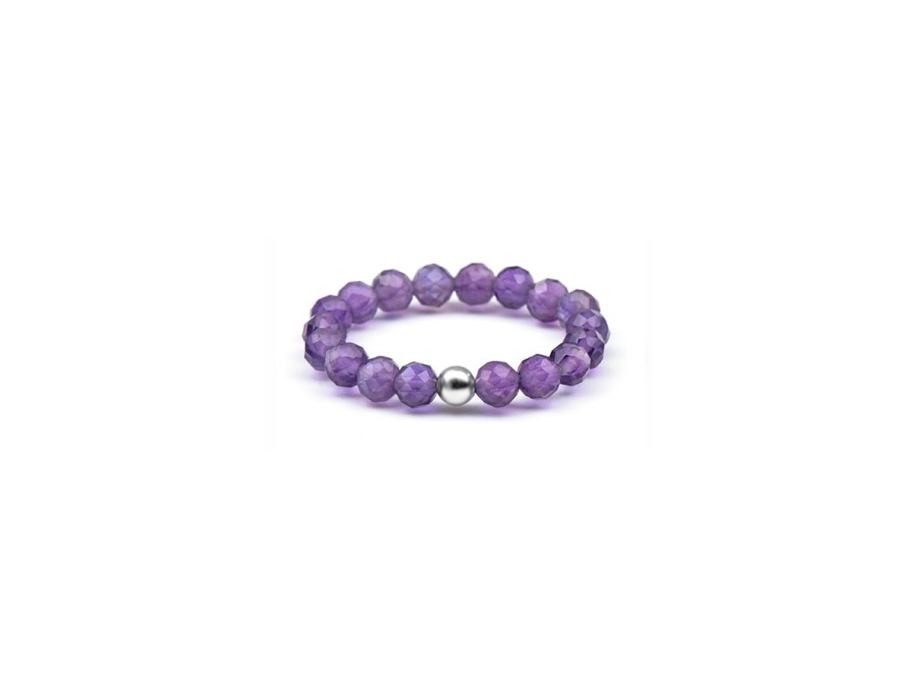 Ametyst je kámen duchovní rovnováhy a klidu, který podporuje vnitřní vyrovnanost, pozitivní energii a ochranu. Prsten je složen z přírodního ametystu a doplněn o lesklou stříbrnou kuličku, díky pružnému provedení se krásně přizpůsobí vaší velikosti. Hodí se zejména pro znamení Ryb, Střelce a Vodnáře, a je skvělou volbou pro každodenní nošení nebo jako dárek, který vnese do života klid, harmonii a jemný šarm.