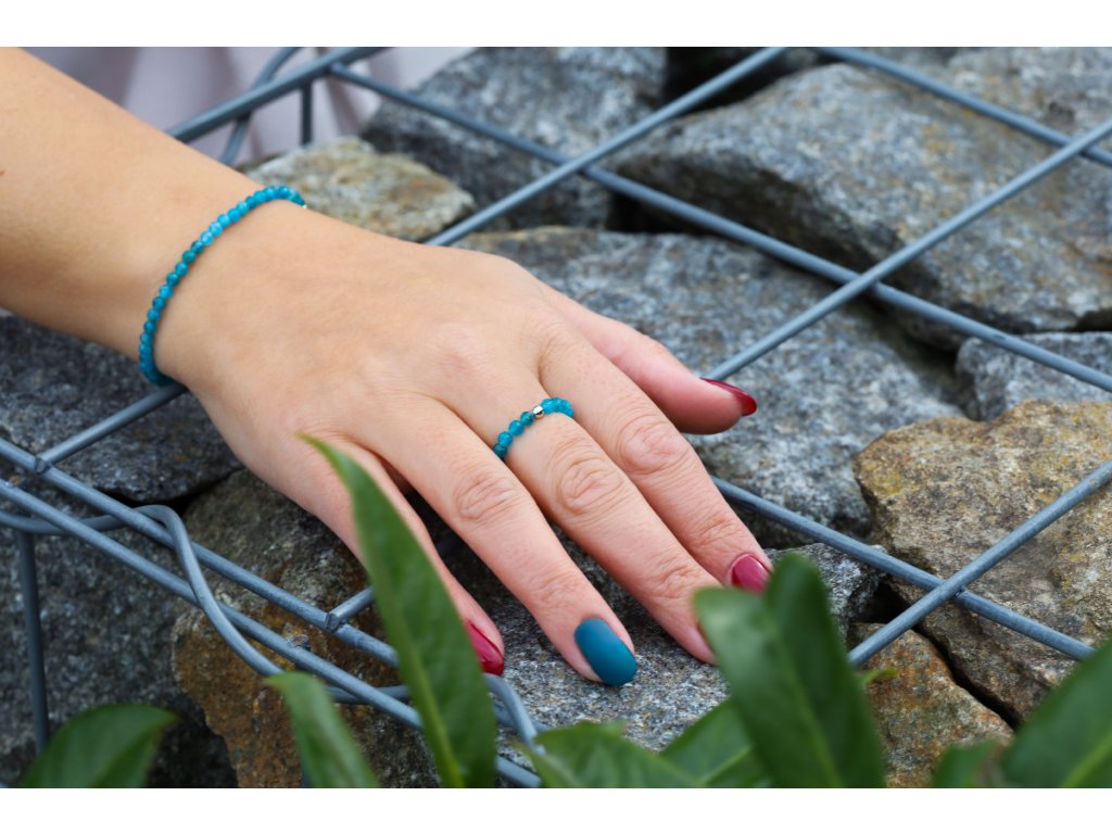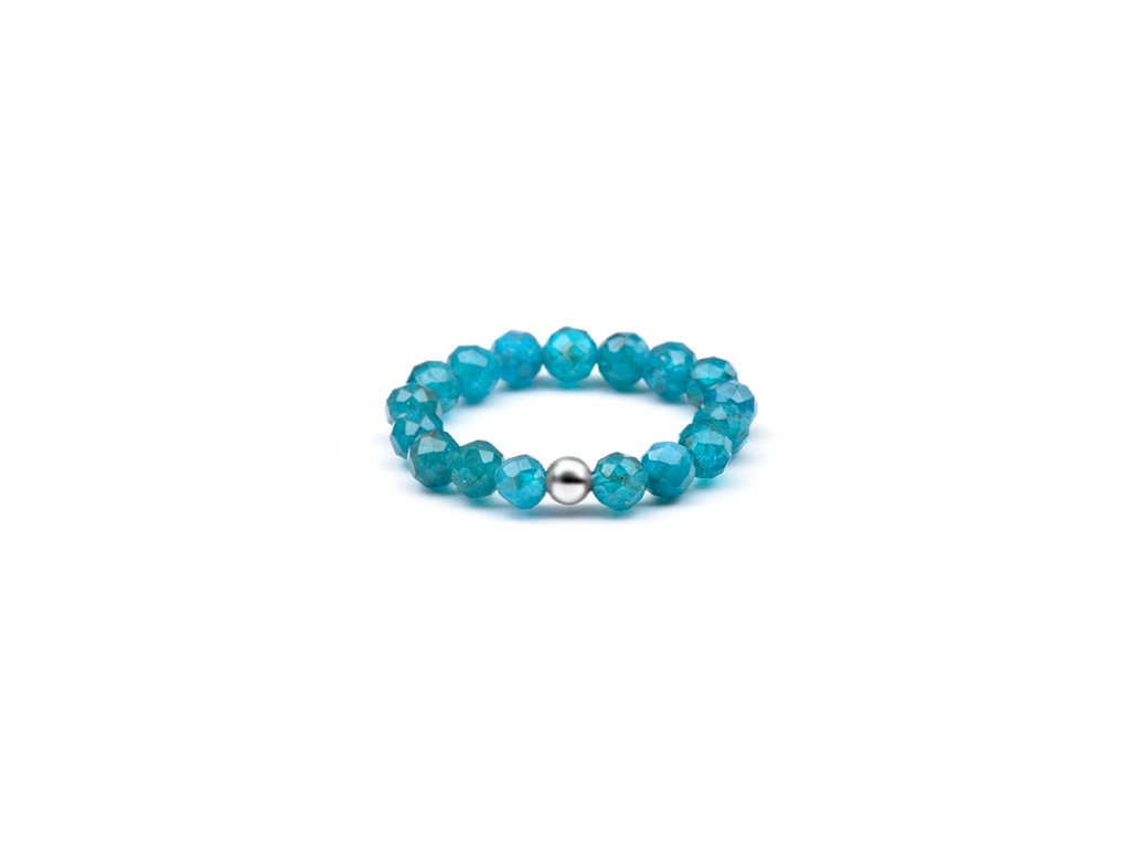 Apatit je kámen soustředění a vnitřní rovnováhy, který podporuje jasné myšlení, klid a pozitivní energii. Prsten je složen z přírodního tyrkysového apatitu a doplněn o lesklou stříbrnou kuličku, díky pružnému provedení se krásně přizpůsobí vaší velikosti. Hodí se zejména pro znamení Střelce, Blížence a Vodnáře, a je skvělou volbou pro každodenní nošení nebo jako dárek, který vnese do života klid, harmonii a svěží energii.