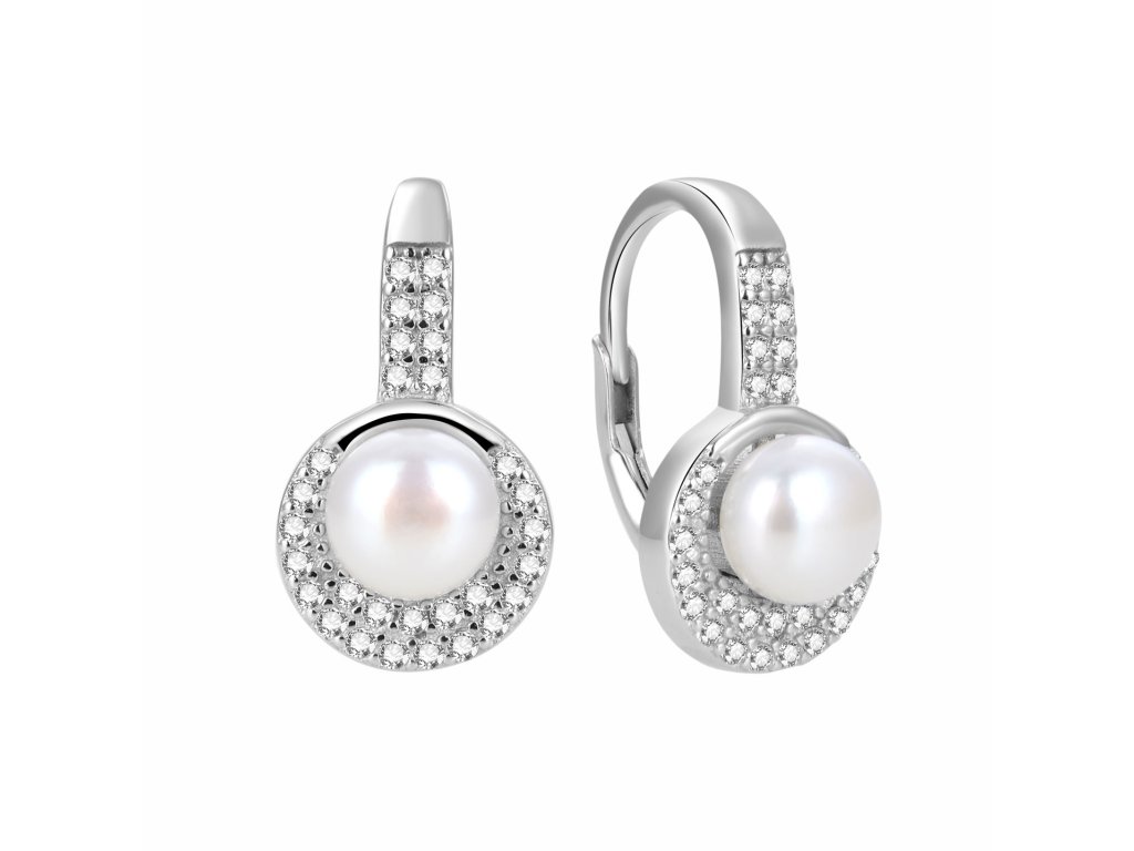 Nadčasové náušnice s perlou a zirkony AGUC2152PL