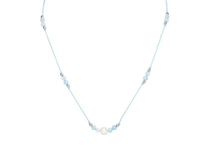 Šňůrkový náhrdelník s akvamarínem a perlou Originální a jemný doplněk, který kombinuje přírodní krásu a eleganci. Základ tvoří modrá hedvábná šňůrka, na níž jsou navlečeny...