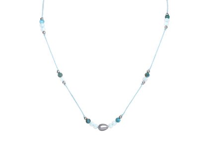 Šňůrkový náhrdelník s apatitem, opalitem a perlou Jemný šperk, který v sobě spojuje kouzlo přírody a moderní eleganci. Modrá hedvábná šňůrka působí vzdušně a svěže, zatímco...