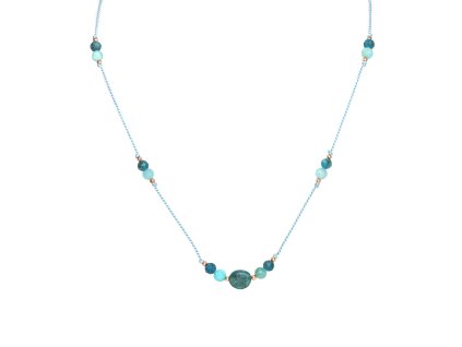 Šňůrkový náhrdelník s amazonitem a apatitem Jemný a zároveň výrazný šperk, který spojuje přírodní krásu kamenů a moderní design. Základ tvoří světle modrá hedvábná šňůrka s...