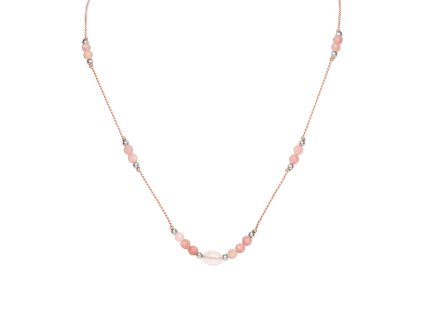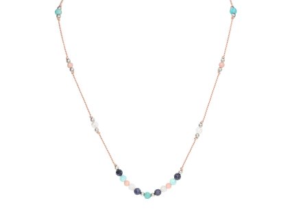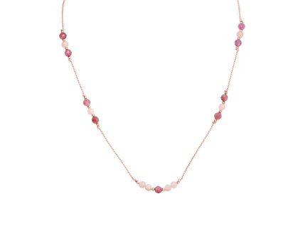 Šňůrkový náhrdelník s amazonitem, angelitem, měsíčním kamenem a safírem Jedinečný šperk, který v sobě propojuje jemnou eleganci a kouzlo přírodních minerálů. Růžová hedvábná...
