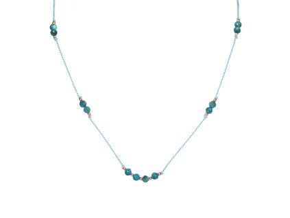 Šňůrkový náhrdelník s apatitem Originální šperk, který spojuje jemnou krásu minerálu s moderním designem. Světle modrá hedvábná šňůrka působí něžně a vzdušně, zatímco korálky z...
