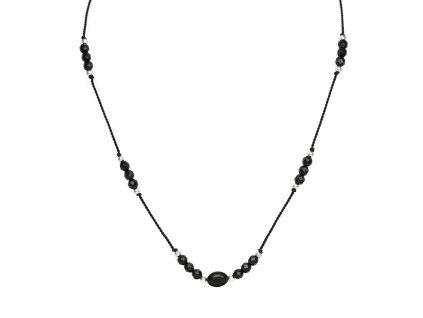 Šňůrkový náhrdelník s onyxem Elegantní a nadčasový doplněk, který vyniká kontrastem černé a zlaté. Jemná hedvábná šňůrka nese korálky z vybroušeného onyxu, doplněné o ocelové...
