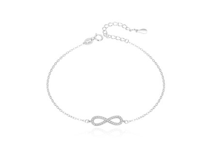 Stříbrný náramek s nekonečnem a srdíčkem Čiré zirkony na nekonečnu dodávají šperku třpyt a jemný šmrnc. Srdíčko s hladkým povrchem působí minimalisticky a romanticky. ...