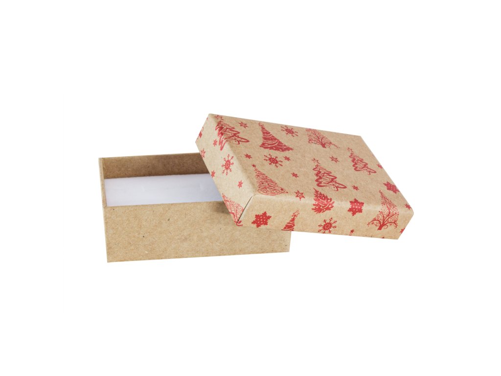 Pevná papírová krabička v přírodní barvě s jemným zimním nebo vánočním motivem je ideální pro uložení náhrdelníku či větších náušnic. Uvnitř se nachází bílá poduška, která šperk elegantně doplní a bezpečně uchytí..