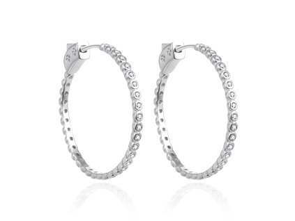 Nadčasové stříbrné kruhy s čirými zirkony Elegantní stříbrné kruhové náušnice vyrobené z kvalitního stříbra jsou ve tvaru nadčasových kruhů. Dekorované třpytivými čirými...