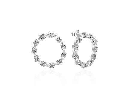 Stylové stříbrné kruhy se zirkony Elegantní náušnice vyrobené ze stříbra ryzosti 925/1000 mají nadčasový kruhový tvar a jsou osazené blyštivými čirými zirkony, které...