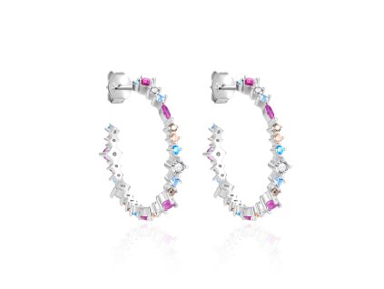 Hravé kruhové náušnice s barevnými zirkony Stylové náušnice vyrobené z velmi kvalitního stříbra jsou zdobené řadou barevných zirkonů, které vytvářejí duhový efekt a...