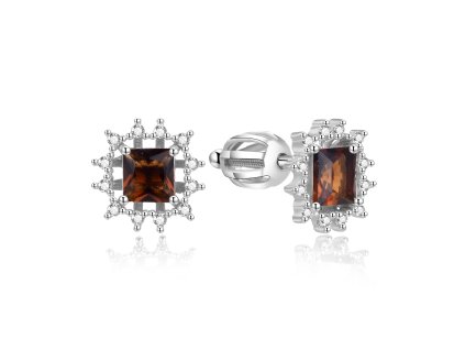 Stříbrné náušnice s kávovým čtvercovým kamínkem Elegantní náušnice z kvalitního stříbra zaujmou třpytem čirých zirkonů a precizně broušeným čtvercovým kávovým kamínkem...
