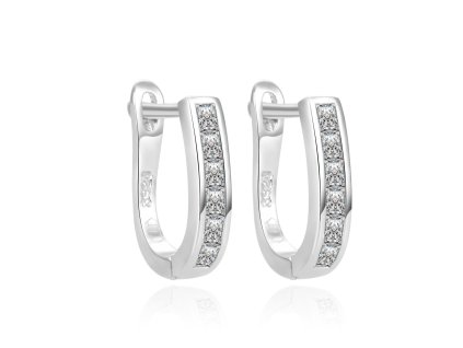Stylové stříbrné náušnice se zirkony Elegantní stříbrné náušnice zdobené jasně třpytivými čirými zirkony přitahují pohled a dodávají šperku moderní a výrazný charakter....