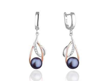 Luxusní bicolor náušnice s pravými tmavými perlami Vyrobené z velmi kvalitního stříbra, tyto náušnice zaujmou nadčasovým bicolor designem, doplněným o pravé tmavě modré perly a...