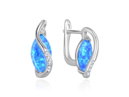 Stříbrné náušnice se syntetickými opály Náušnice jsou zdobené precizně broušenými světle modrými syntetickými opály, které dodávají šperku jemný a oslnivý třpyt. Drobnější čiré...