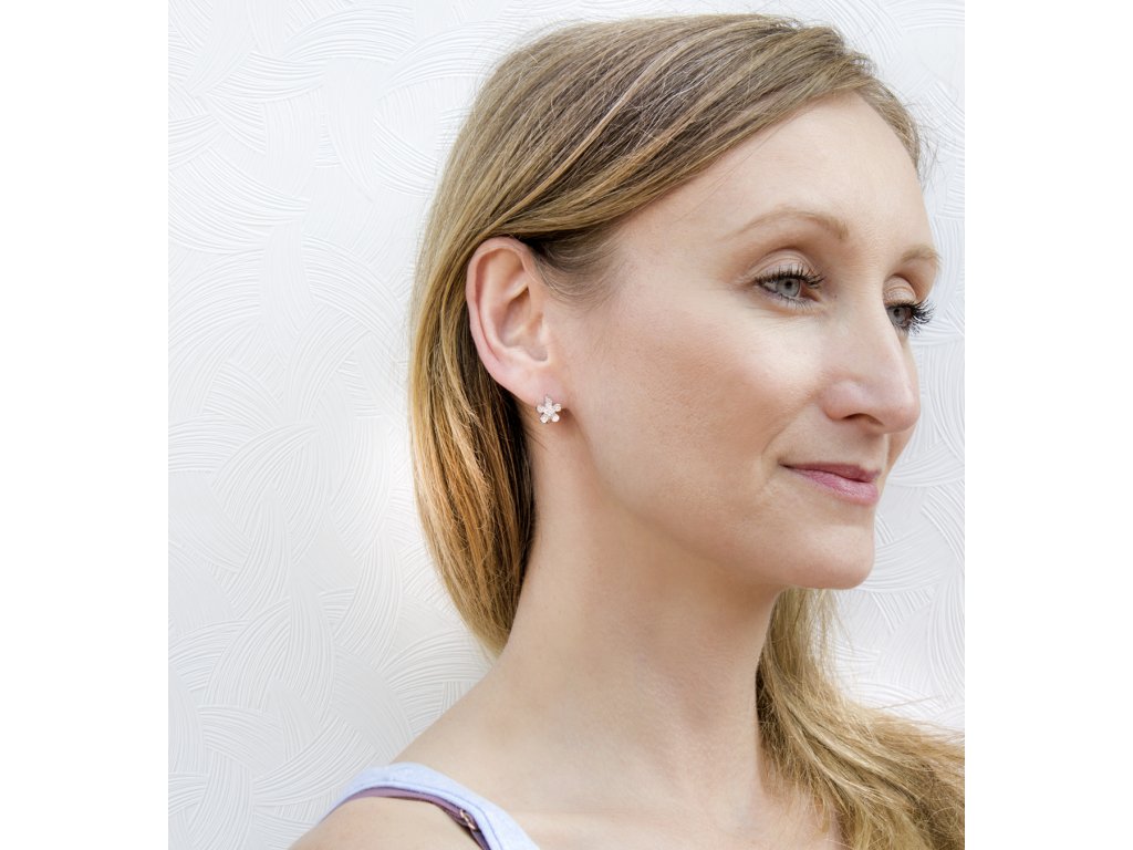 Něžné kruhové náušnice s květinou a zirkony AGUC2732