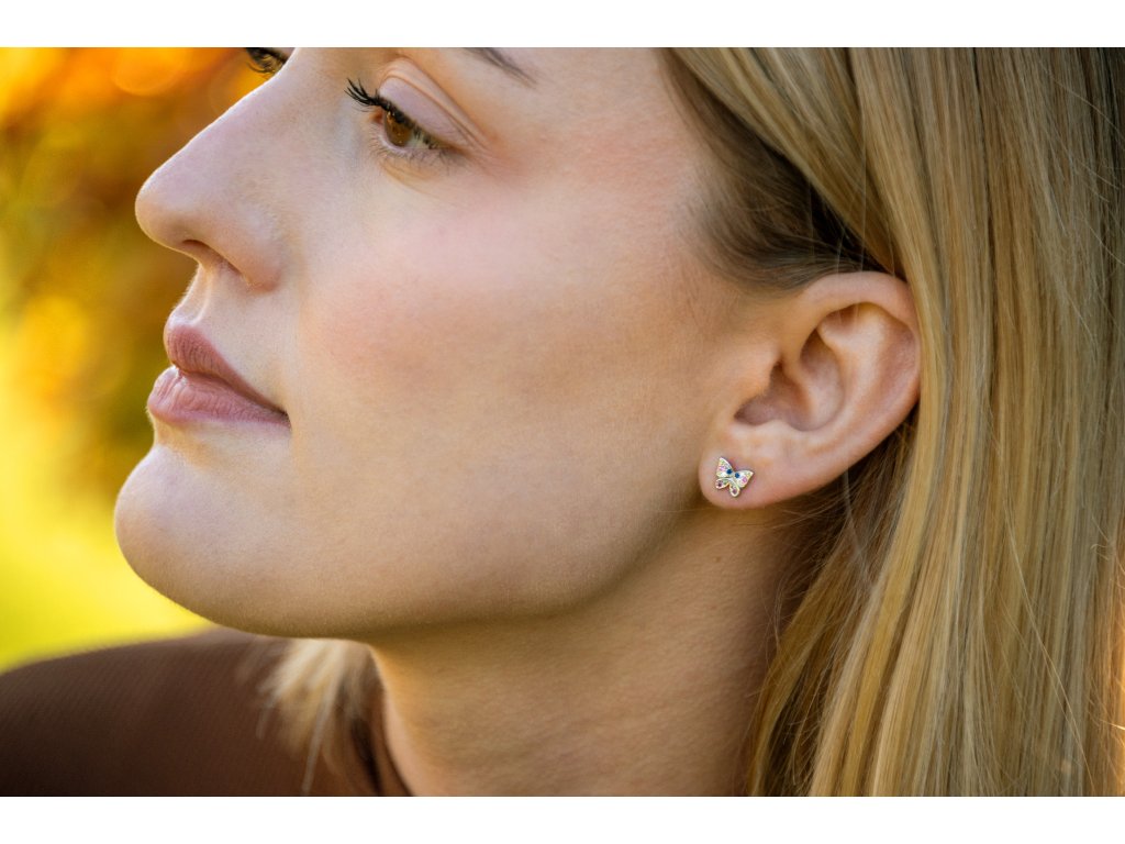 Něžné stříbrné náušnice s motýlky AGT-E070PC