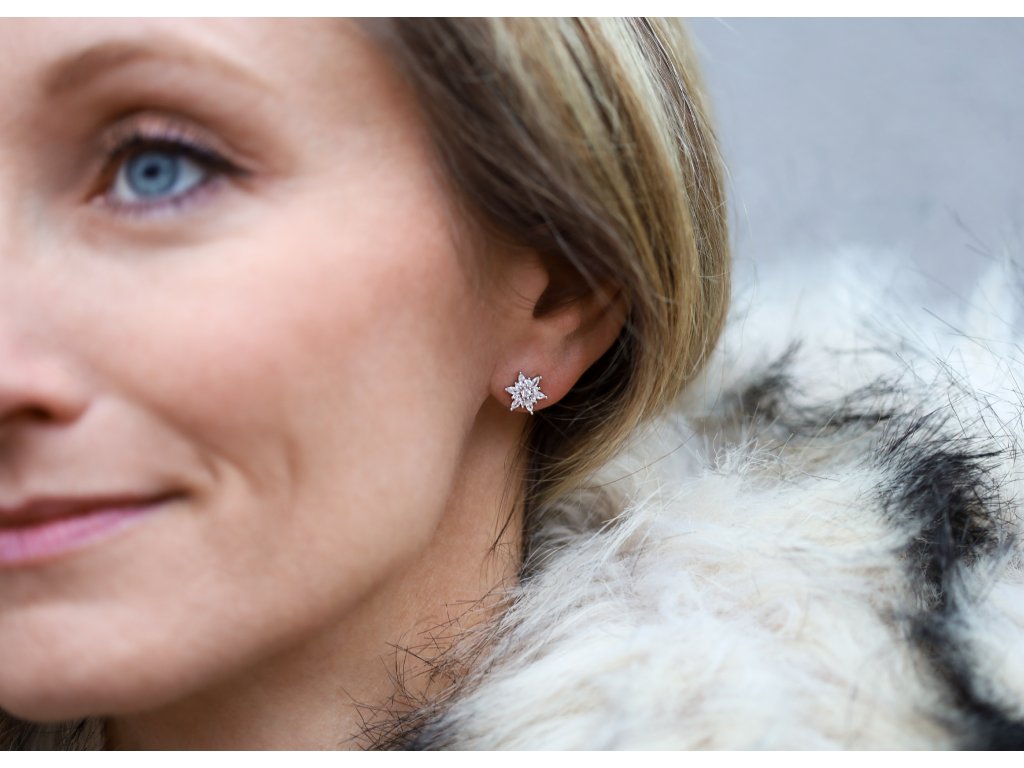 Něžné stříbrné náušnice se sněhovou vločkou AGT-E005PW