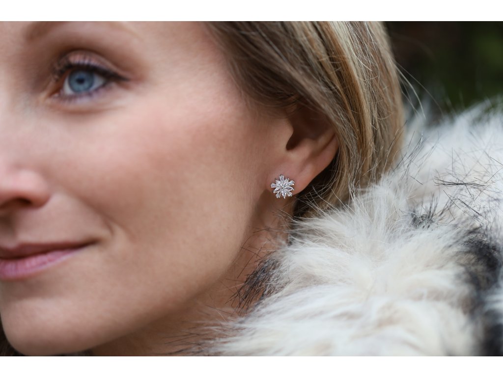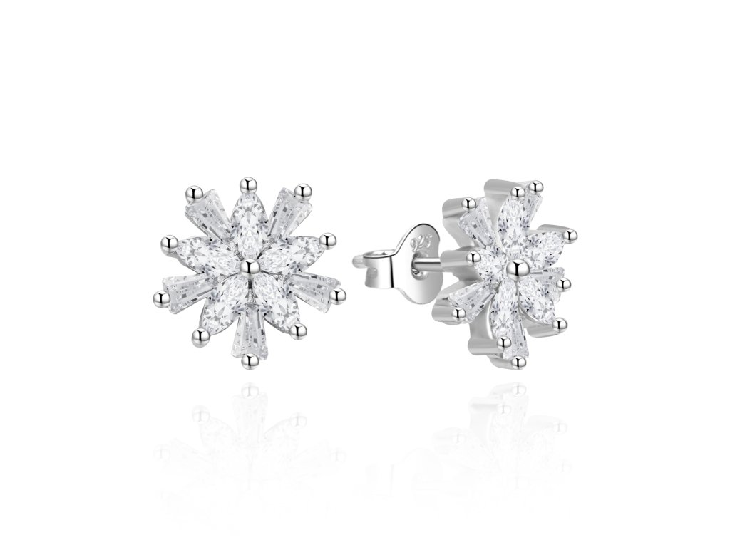 Něžné stříbrné náušnice se sněhovou vločkou AGT-E009PW