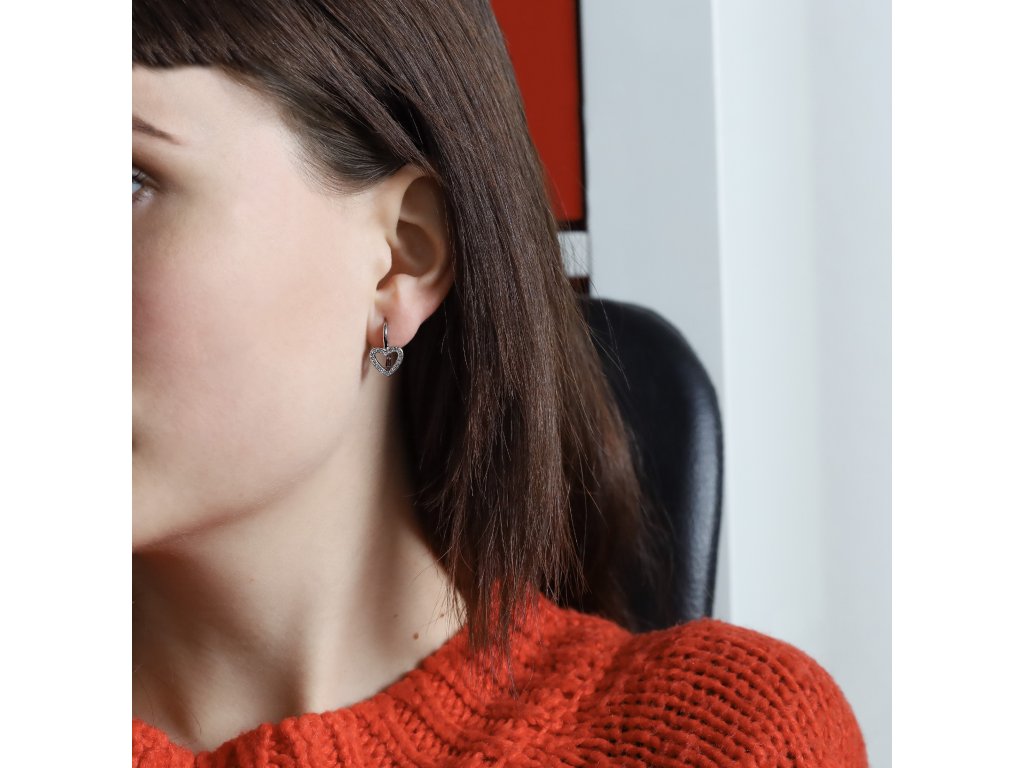 Něžné stříbrné náušnice se srdíčky AGUC1958