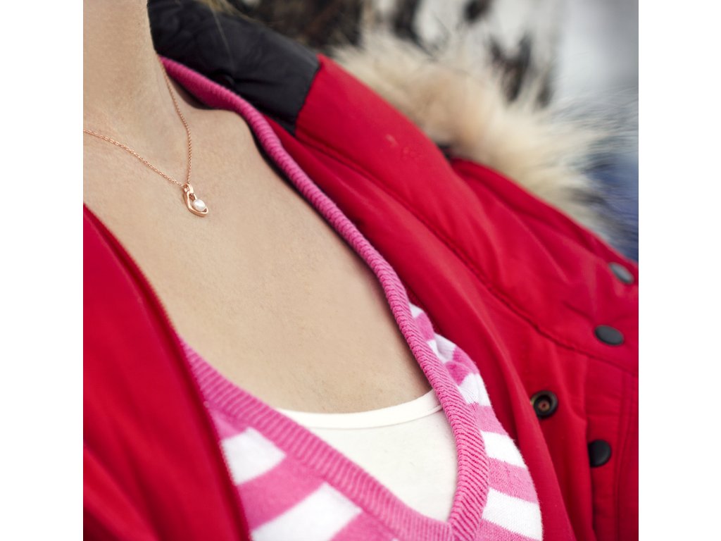 Na jemném stříbrném řetízku s růžovým pozlacením se vyjímá srdíčko doplněné perlou, která působí elegantně a nadčasově. Délku lze nastavit na 42 cm s prodloužením o 5 cm, takže se snadno přizpůsobí. Tento šperk vnese do vašeho stylu romantiku, jemnost a luxusní detail.