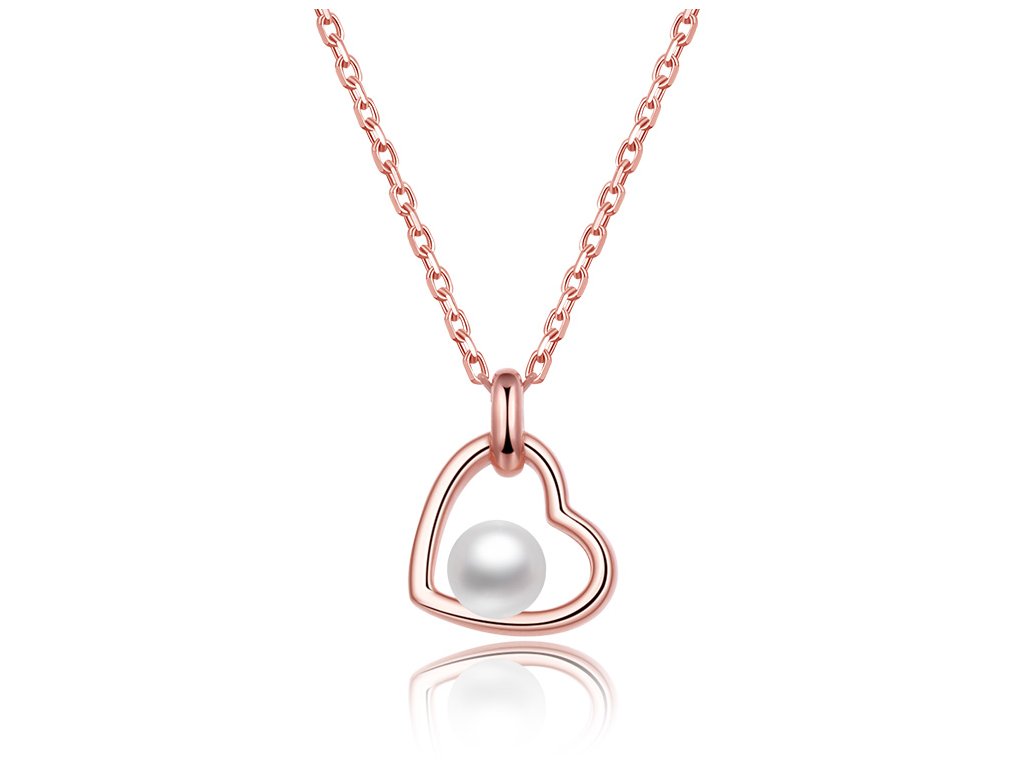 Něžný růžově pozlacený stříbrný náhrdelník se srdíčkem a perlou AGS1230/47P-ROSE