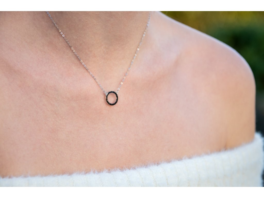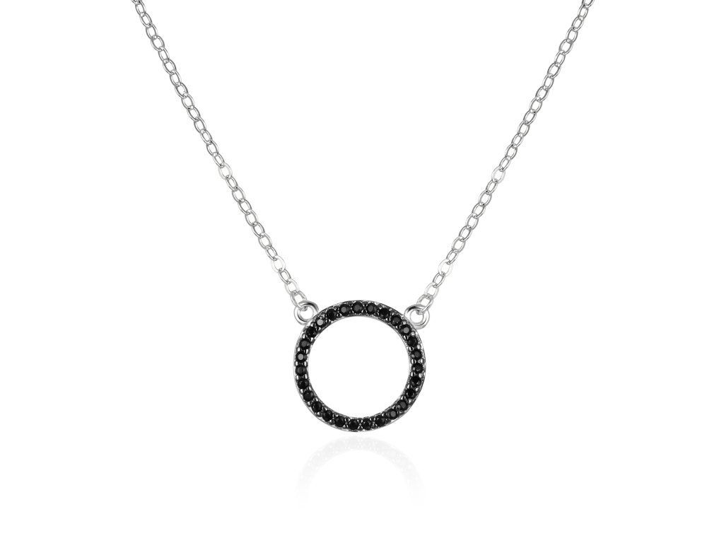 Něžný stříbrný náhrdelník s černými zirkony v kruhu AGT-N004BK