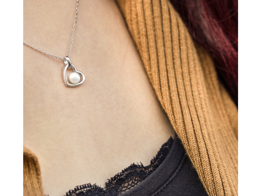 Něžný stříbrný náhrdelník se srdíčkem a perlou AGS1230/47P