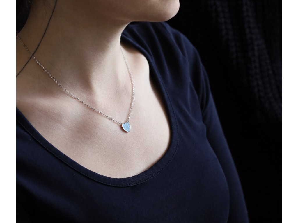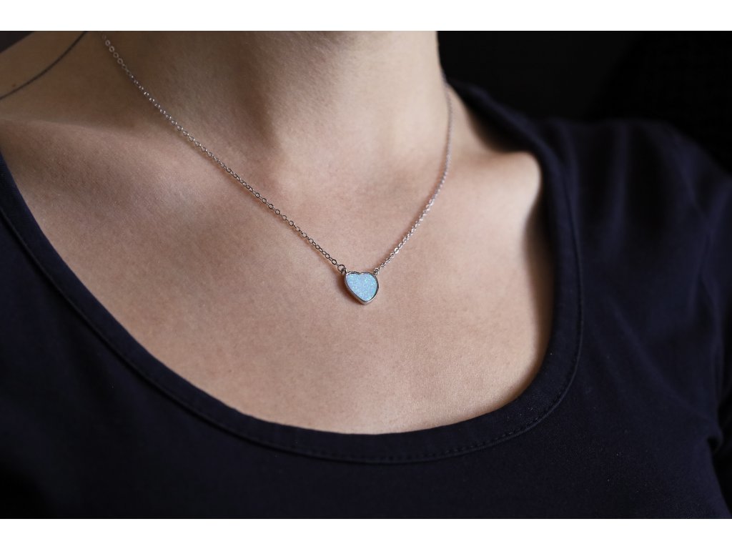 Srdíčko je vyplněné syntetickým opálem, jehož proměnlivá hra barev dodává šperku osobité kouzlo. Řetízek má délku 45 cm, takže skvěle padne a vynikne na dekoltu. Perfektní doplněk pro každodenní nošení i jako romantický dárek od srdce.