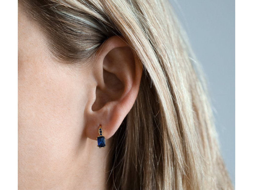 Náušnice jsou zdobené precizně broušenými zirkony v sytě modrém odstínu, které krásně odrážejí světlo a rozzáří tvář. Bezpečnostní zapínání na klapku zajistí pohodlné nošení a spolehlivě brání ztrátě. Tento šperk se stane oblíbeným kouskem, jenž podtrhne ženský půvab a eleganci.