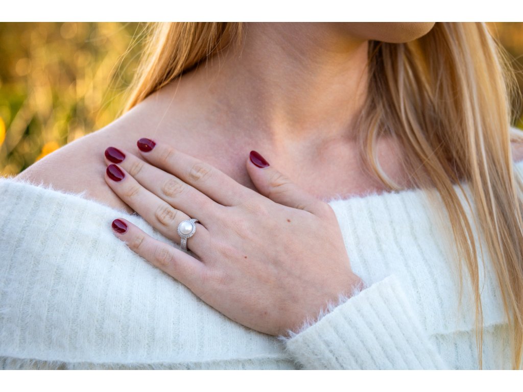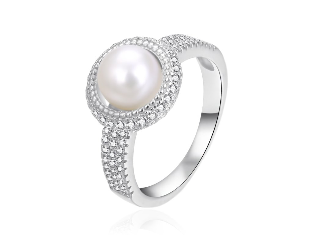 Okouzlující stříbrný prsten s perlou a zirkony AGT-R10W
