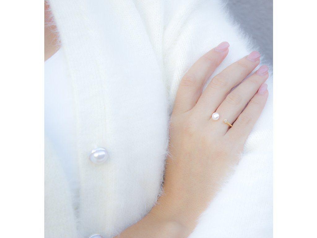 Otevřený pozlacený prsten se zirkony a perlou AGG467-G