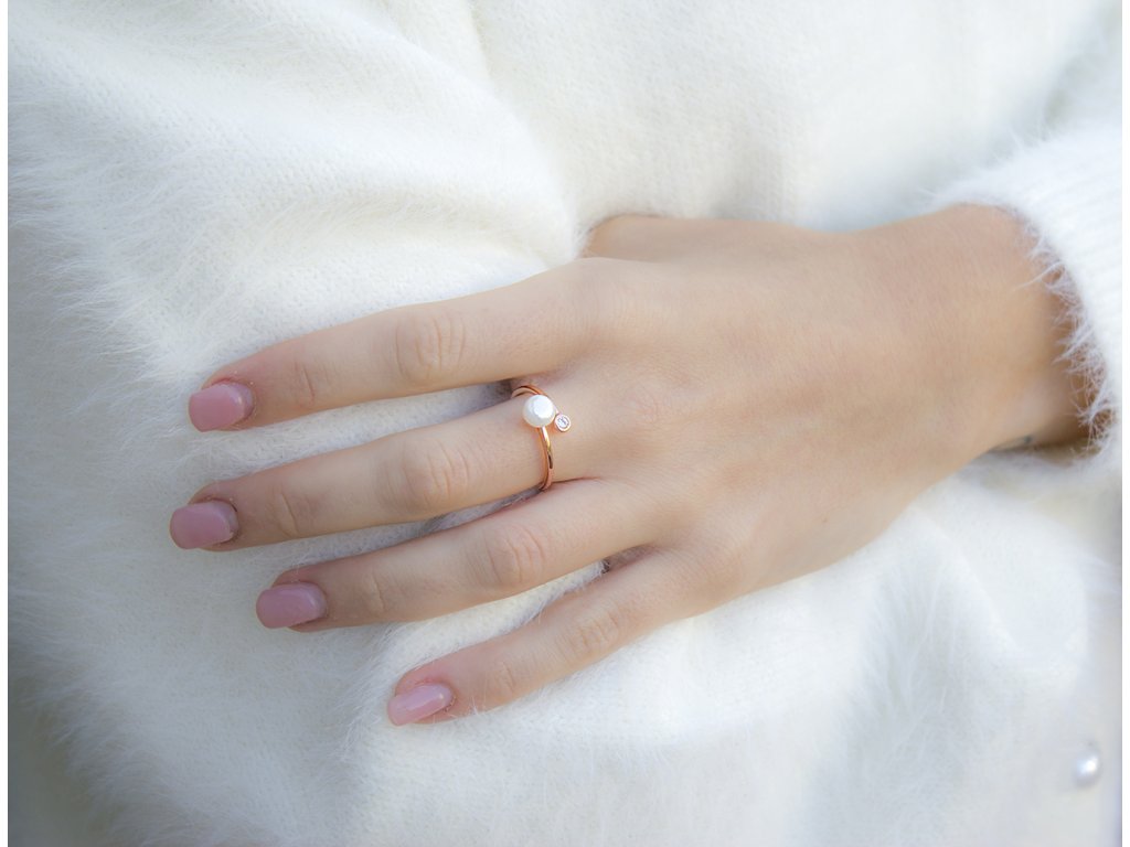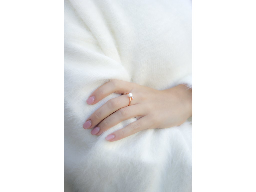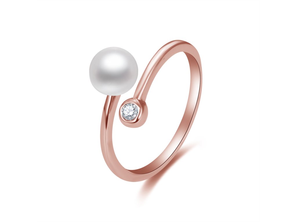 Otevřený růžově pozlacený prsten s perlou a zirkonem AGG469P-RG