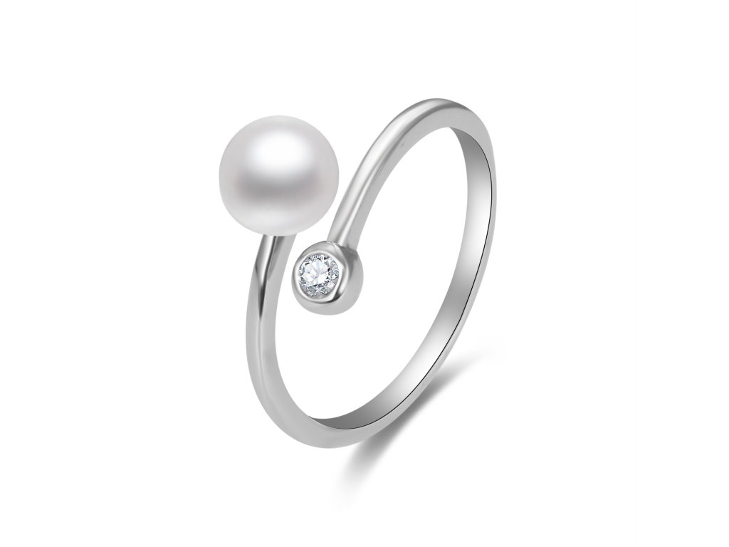 Otevřený stříbrný prsten s perlou a zirkonem AGG469P