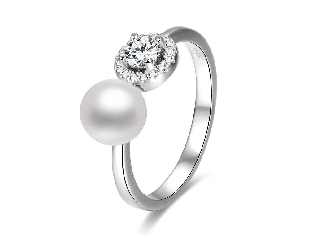 Otevřený stříbrný prsten se zirkony a perlou AGG339P