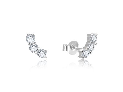 Stříbrné podélné náušnice s čirými zirkony Elegantní stříbrné náušnice zdobené čirými zirkony přinášejí do outfitu oslnivý třpyt a nadčasový šarm. Na první pohled vás zaujme...