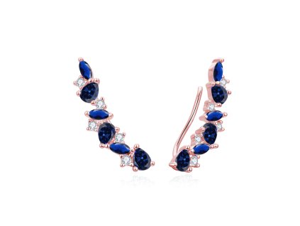 Podélné pozlacené náušnice s modrými zirkony Elegantní podélné náušnice zaujmou svým jemným a moderním designem. Celé náušnice jsou pozlacené oblíbeným růžovým zlatem a zdobí je...