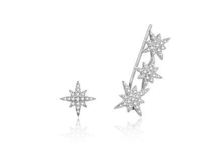 Asymetrické stříbrné náušnice se zirkony Hvězdy Originální náušnice s hvězdami zaujmou svým hravým a elegantním designem. Jedna náušnice je zdobena jednou hvězdou, druhá se...