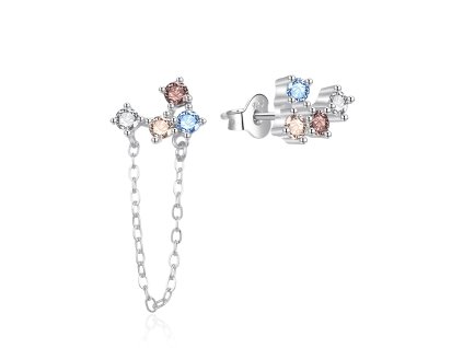 Asymetrické stříbrné náušnice s barevnými zirkony Obě náušnice zdobí precizně vybroušené barevné zirkony, které se jemně třpytí při každém pohybu. Jejich asymetrický design...