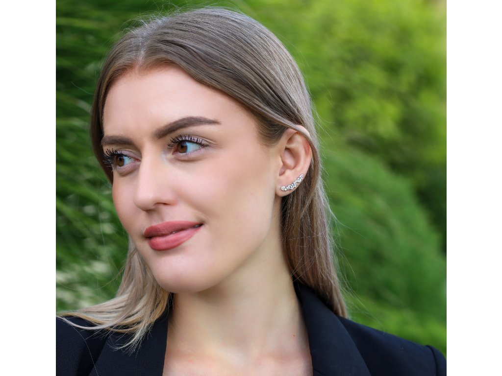 Náušnice v uchu bezpečně drží díky praktickému háčku, což umožňuje pohodlné nošení po celý den, aniž byste se musely obávat jejich ztráty. Precizně broušené zirkony zachycují světlo z každého úhlu, dodávají šperku oslnivý třpyt a podtrhují vaši přirozenou krásu i styl.
