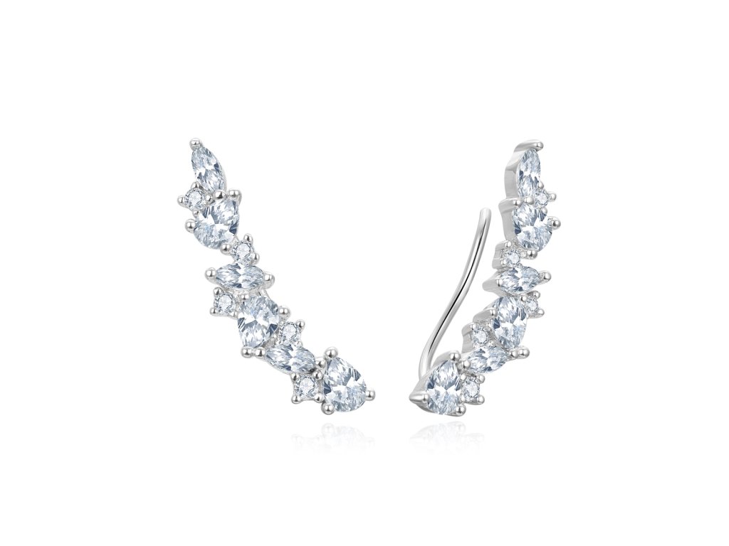 Podélné stříbrné náušnice s čirými zirkony AGUP3299W
