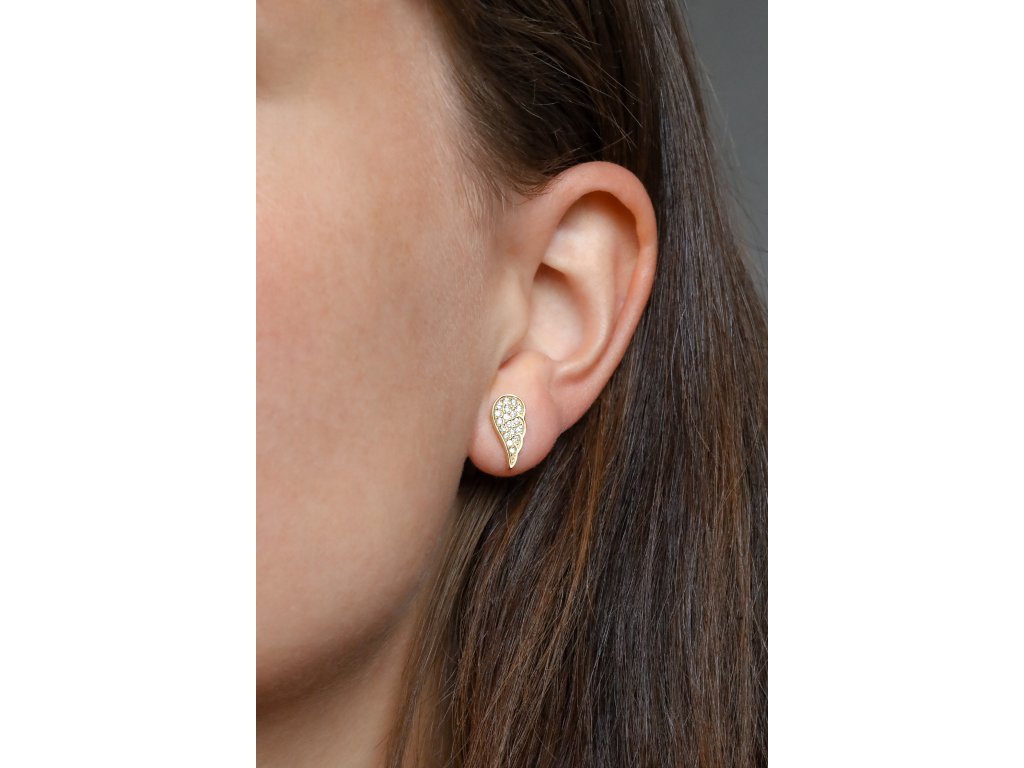 Pozlacené náušnice andělská křídla se zirkony AGUP2610-GOLD