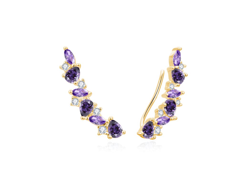 Pozlacené podélné náušnice s fialovými zirkony AGUP3299F-GOLD