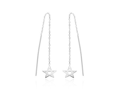 Dlouhé stříbrné náušnice Hvězdy Tyto elegantní náušnice jsou vyrobené z kvalitního stříbra a jejich dlouhé řetízky zdobí jemný motiv hvězdy, který přidává šperku něžný a hravý...